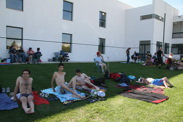 O forte calor e a relva bem tratada convidaram ao indispensável momento da sesta, à sombra do edifício das piscinas, e só depois desse descanso se deu início às actividades ali realizadas. Começaram com pinturas num painel, fazendo-as uns com marcas de mãos, outros com marcas de pés, e alguns mostraram a sua habilidade com o pincel. Passaram, depois, à hidroginástica e às brincadeiras na água, sob atenta vigilância dos técnicos e funcionários das piscinas. De vigilância estiveram também dois socorristas da Delegação da Cruz Vermelha de Oliveira do Conde, em serviço de prevenção com uma ambulância de urgência pré-hospitalar.