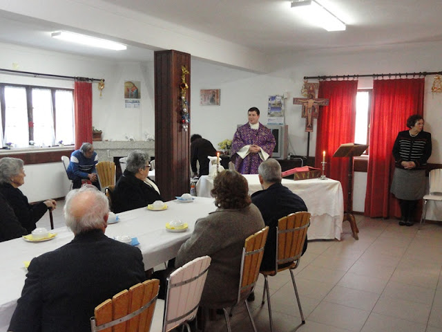 À chegada ao Centro Paroquial, foram realizadas as confissões, a que se seguiu a missa de Natal. Durante a homilia o Senhor Padre Marco referenciou o número cada vez menor dos idosos da freguesia e presenteou todos eles com o beijar do menino Jesus, uma vez que muitos dos idosos ali presentes não teriam oportunidade de o fazer mais tarde com a restante população cristã.