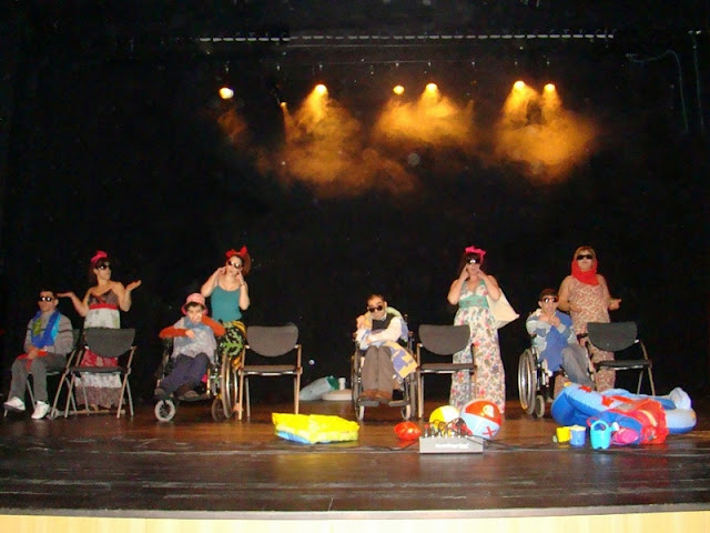 Depois foi a vez de os utentes do Centro de Atividades Ocupacionais do Pólo de Oliveira do Conde da Associação de Paralisia Cerebral de Viseu subirem ao palco e surpreender todos com a apresentação de um tema que marcou os anos sessenta: “Óculos de Sol”.